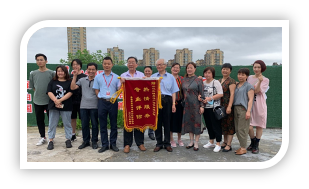 6月5日上午,嘉善縣羅星街道豐前新村居民代表來到有機更新項目現場為浙江和誠房地產估價有限公司送來錦旗,嘉善分公司負責人王飛攜分公司員工向居民代表們表示感謝,并接受了這份榮耀。